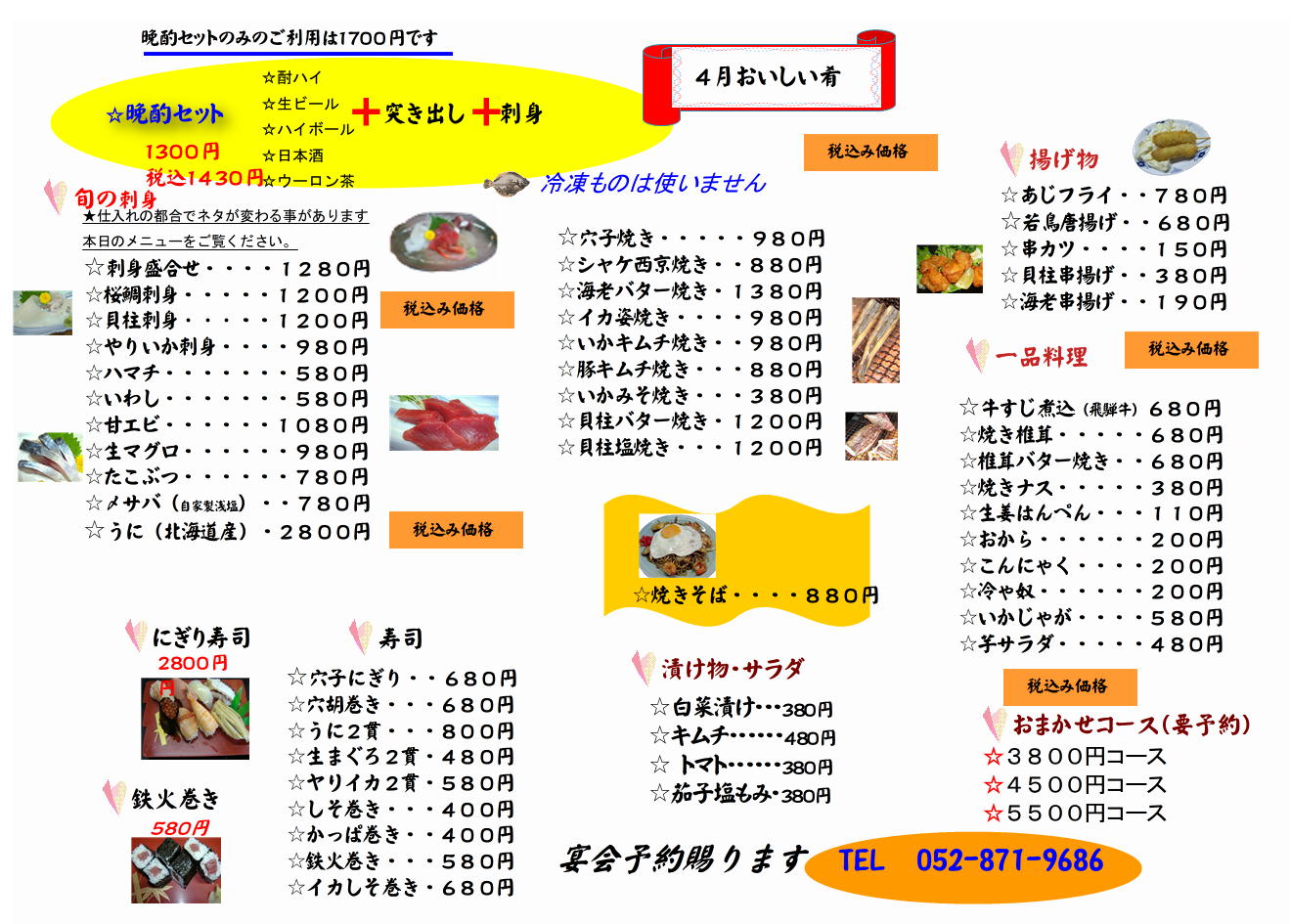 ★先付け・造り・炊合せ・焼魚・揚物・寿司細巻・止め椀